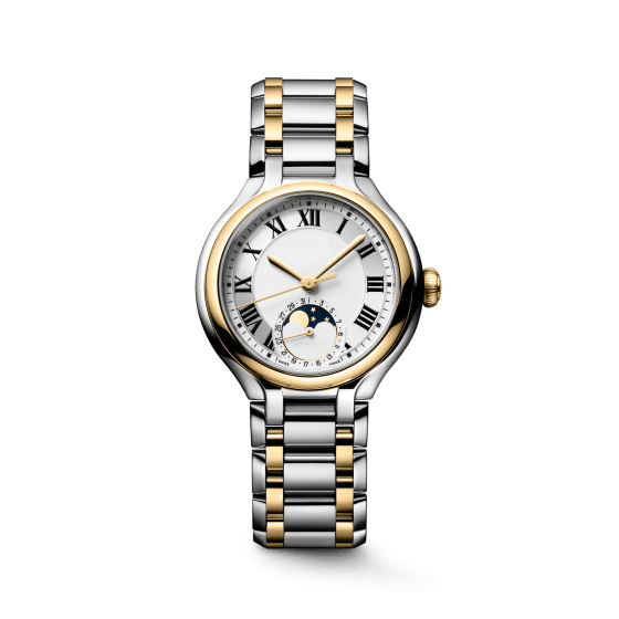 Reloj Automático de Dos Tonos con Fase Lunar, Números Romanos y Correa de Acero Inoxidable para Mujer Longinesing