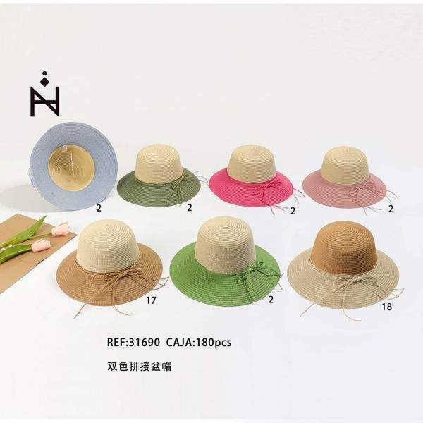 Sombrero de Paja de Ala Ancha con Diseño de Parches en Dos Tonos, Caja de 180 Piezas, Protección Solar para el Verano, Moda Femenina