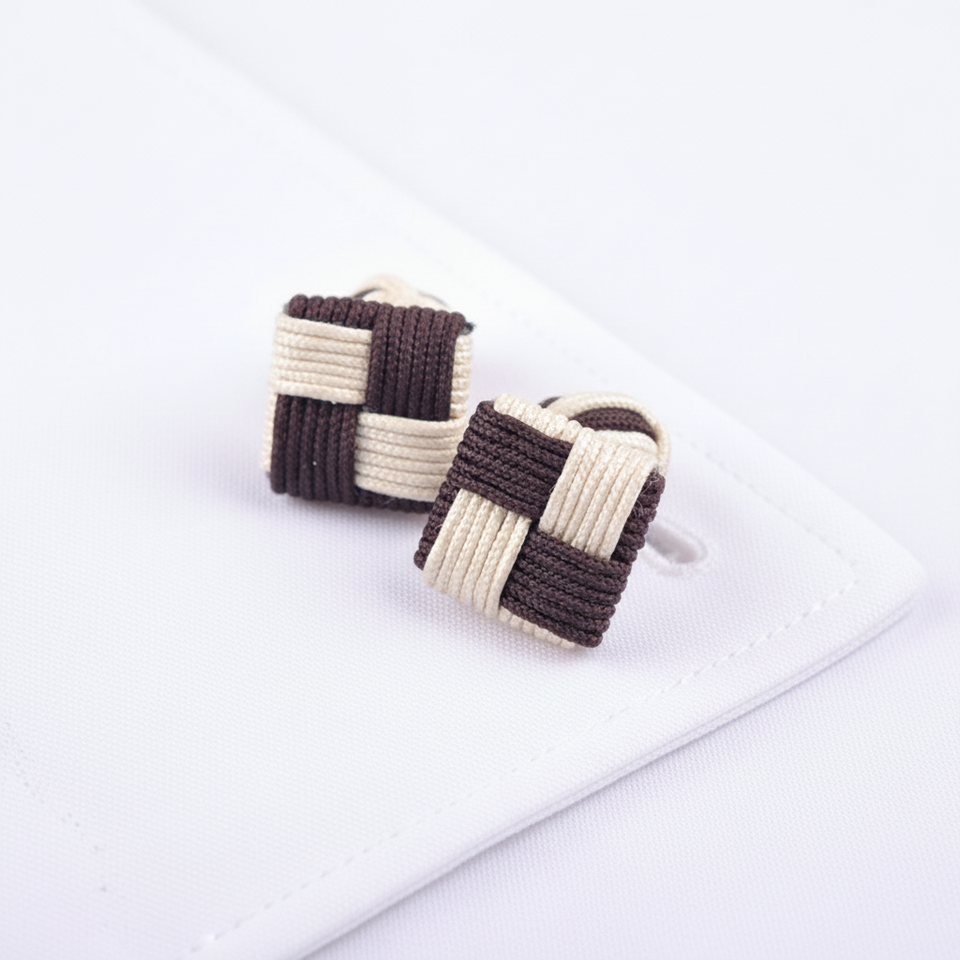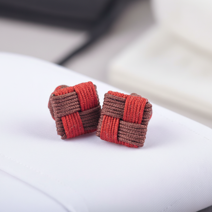 Mancuernillas de Seda Bicolor con Nudo Cuadrado para Hombre, para Trajes, Camisas, Bodas, Aniversarios, Compromisos, Fiestas, Regalo