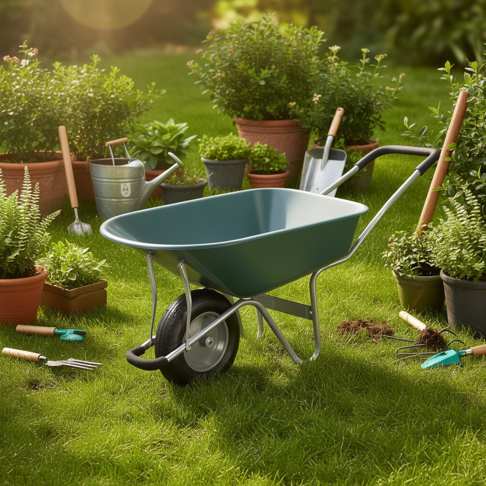 Carretilla de Dos Ruedas con Rueda Neumática de 15 Pulgadas, Bandeja Metálica, Manual, Verde, para Uso en Jardín