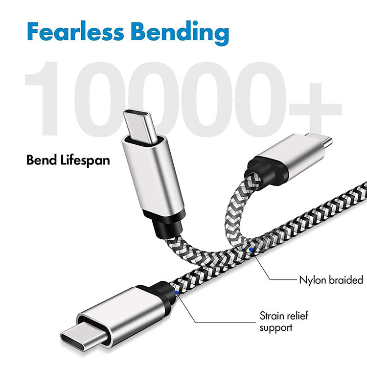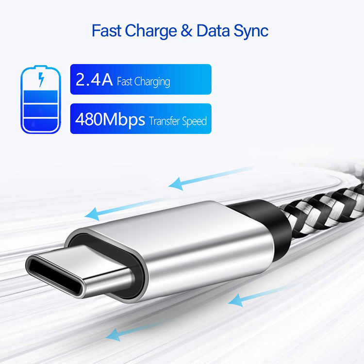 Cable de Datos USB a 2.0 a Tipo C de Alta Calidad con Carcasa de Aluminio Trenzado de Dos Colores, 480 Mbps, Cubierta de Nailon para Dispositivos iOS
