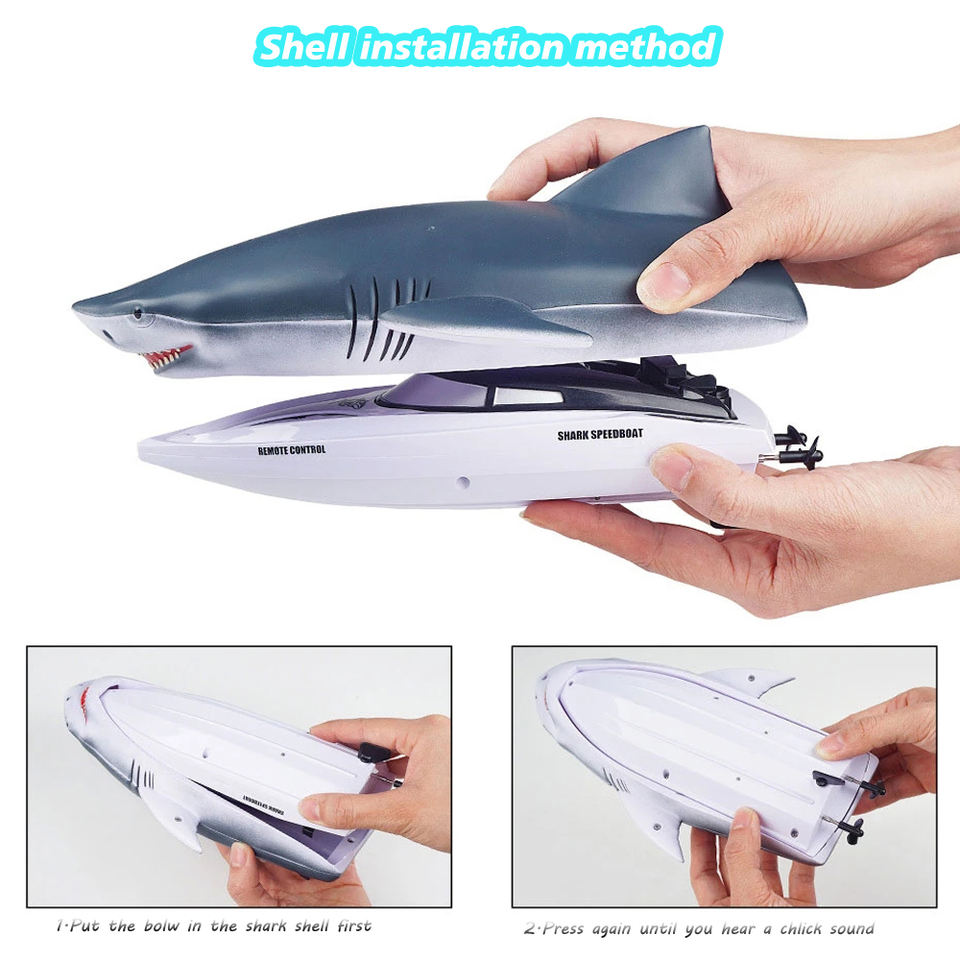 Barco de Control remoto de tiburón de simulación, dos en uno, 2,4G, alta velocidad, larga duración, Submarino, lancha eléctrica de agua, juguete