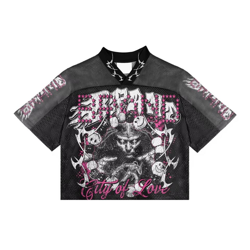 Camisetas de dos piezas para hombre, 100% poliéster, corte holgado, malla transpirable, logotipo personalizado, cuello acanalado, estampado en la parte delantera.