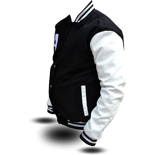 Chaqueta varsity de dos tonos para hombre con puños acanalados en la parte delantera, forro suave y estilo deportivo juvenil para atuendos urbanos informales.