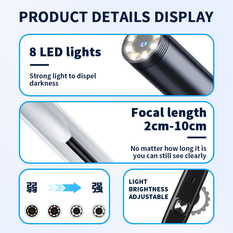 Endoscopio Industrial de Última Generación con 8 Luces, Cable Semirrígido de 8 mm, para Reparación Automotriz