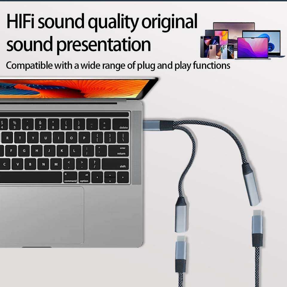 Adaptador de Audio Digital y Carga Tipo-C 2 en 1, Convertidor DAC que Divide un USB-C en un Conector para Auriculares de 3.5 mm y un Puerto de Carga