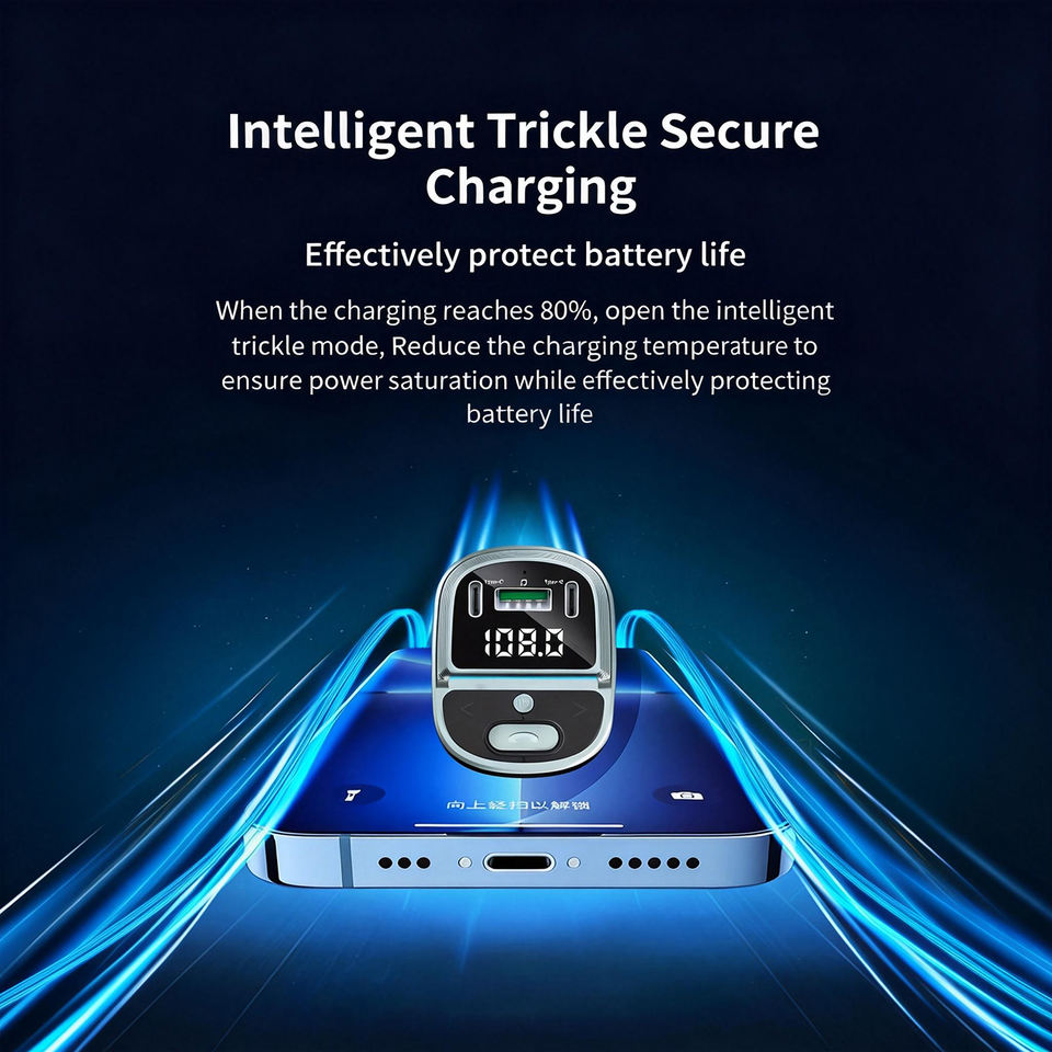 Cargador Rápido USB Dual Tipo-C para Auto, Transmisor FM Bluetooth 5.4, Modulador de Radio Manos Libres, Reproductor MP3 Estéreo