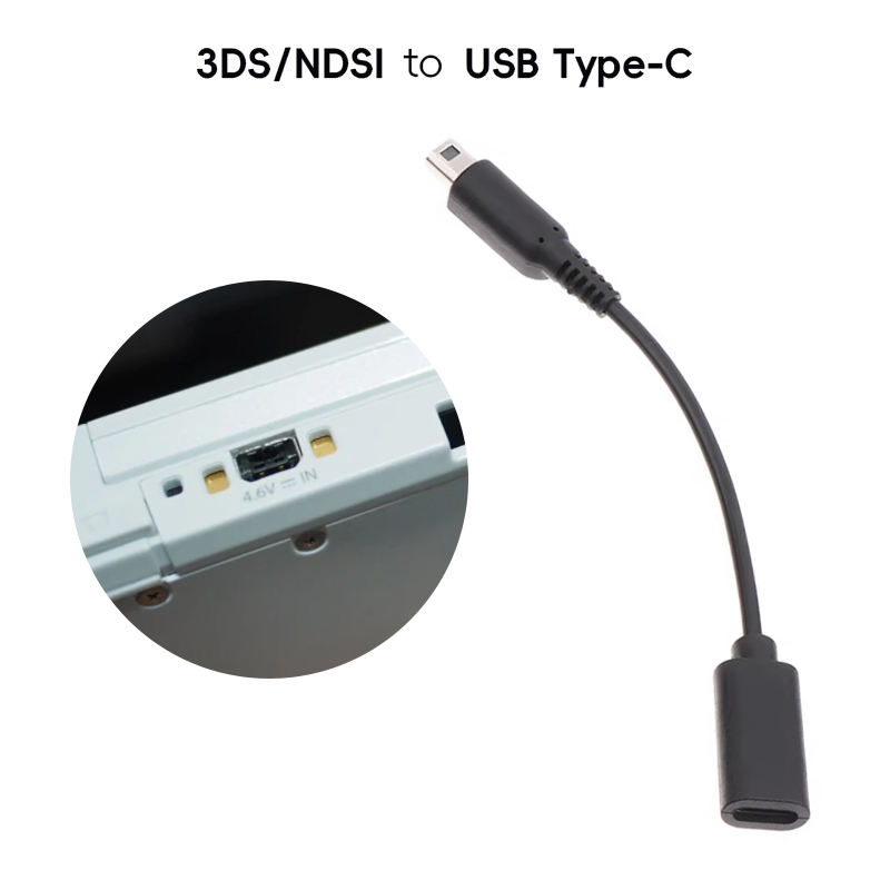 Cable de Extensión de Carga Tipo C Hembra para Consola de Juegos 3DS XL, Cable de Alimentación con Accesorios
