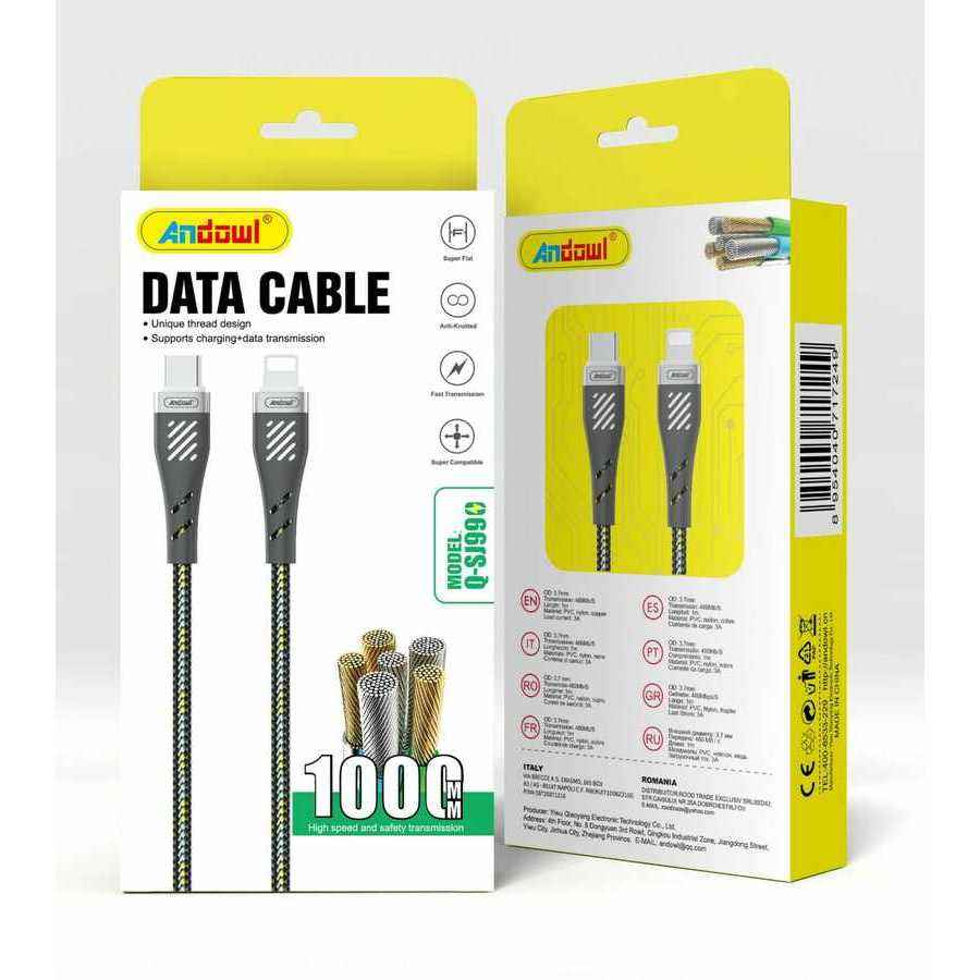 Cable de Datos Andowl Tipo-C de 1m con Trenzado de Nailon y Cobre Puro para Carga Rápida de Teléfonos Móviles