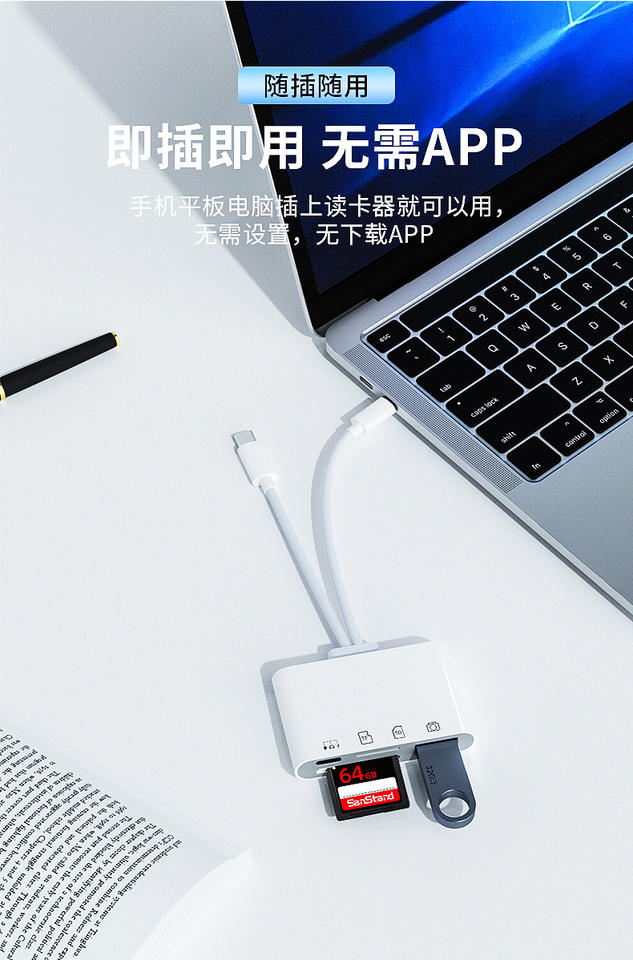 Adaptador Hub 3 en 1 con Puerto Tipo C ISO y Adaptador para Tarjeta SD