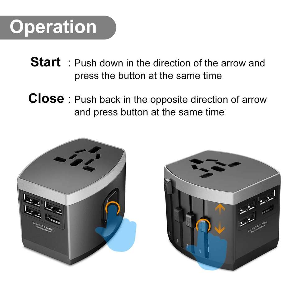 Adaptador de cargador USB todo en uno tipo C PD QC para viajes con enchufe EU US UK AU enchufes de cargador de energía de viaje universales