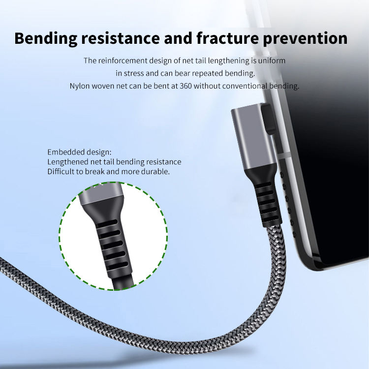 Cable de Datos USB Tipo C con Ángulo Recto y Trenzado