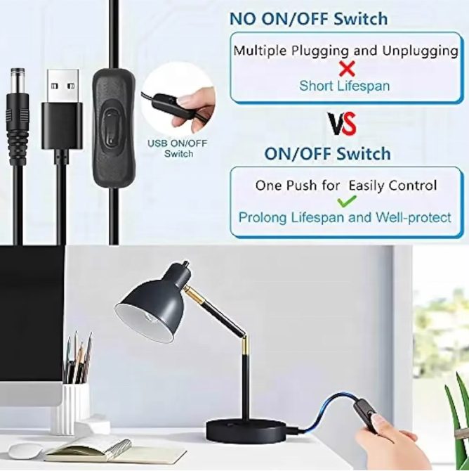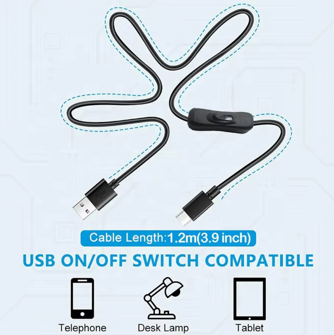 Cable de Carga Micro USB Tipo C con Interruptor de Encendido/Apagado, Cable de Extensión USB a DC para Teléfono, Ventilador USB LED, etc.