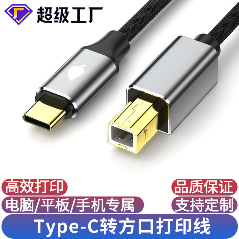 Cable de impresora tipo C, sincronización de datos USB 2,0 para ordenador portátil, teléfono móvil, tableta, 1 metro