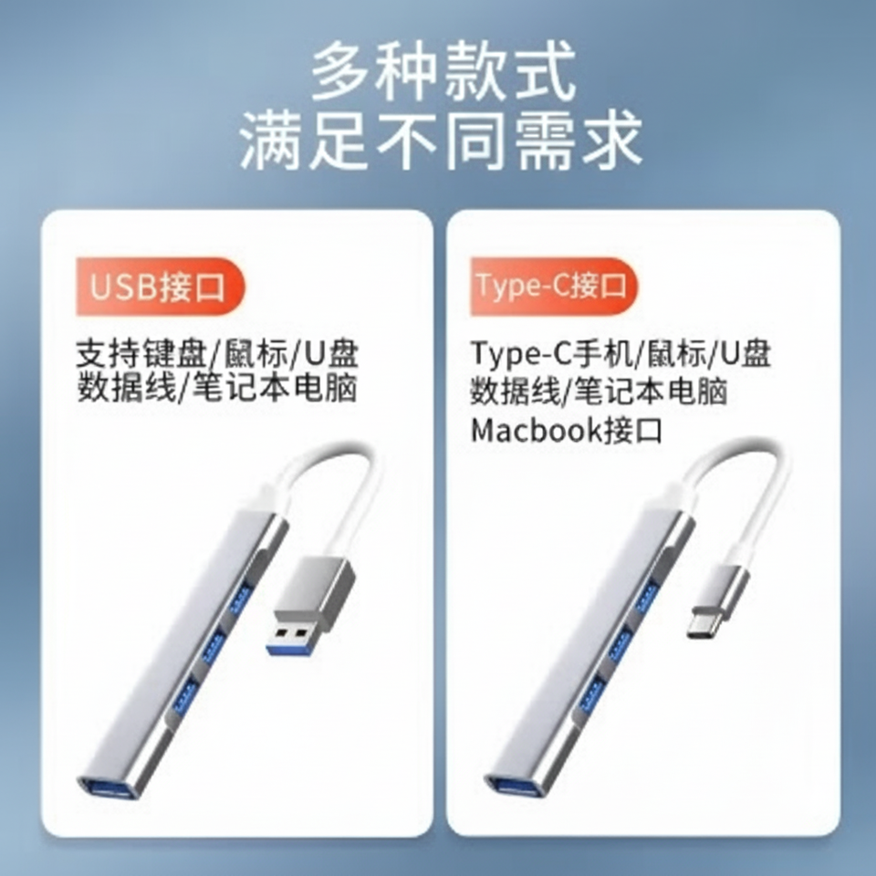 Extensor duradero de aleación de aluminio con concentrador de 4 puertos USB 3,0 tipo C para ordenador portátil