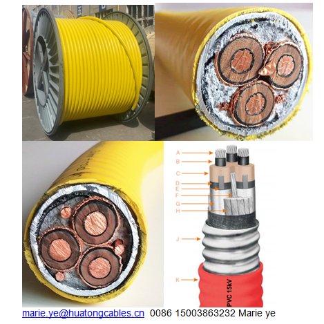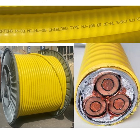 Cable de Alimentación Blindado Tipo MV-105, MV90 o MC-HL 3c 350mcm +2awg G 5kV 8kV - Revestimiento de Aluminio CCW, Nivel de Aislamiento del 100% y 133%