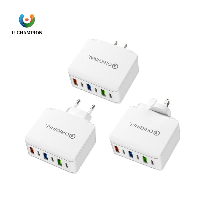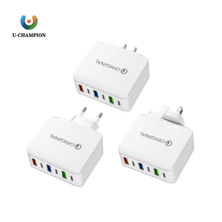 Cargador multifunción multipuerto rápido USB tipo C + adaptador de enchufe de EE. UU. UE y Reino Unido para cargador de teléfono inteligente