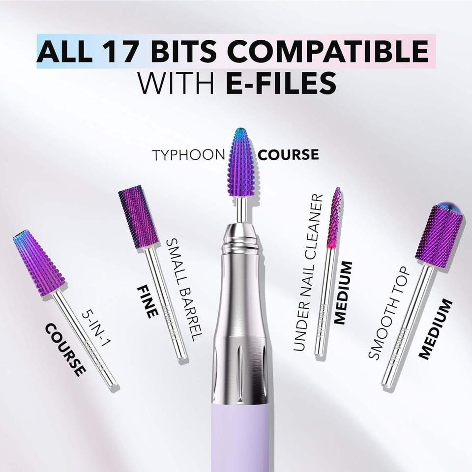 Broca para Uñas de Carburo Typhoon Course, Diseño de Corte en X, Vástago Recto Sin Recubrimiento, Broca de Carburo MORADA para Uñas Acrílicas