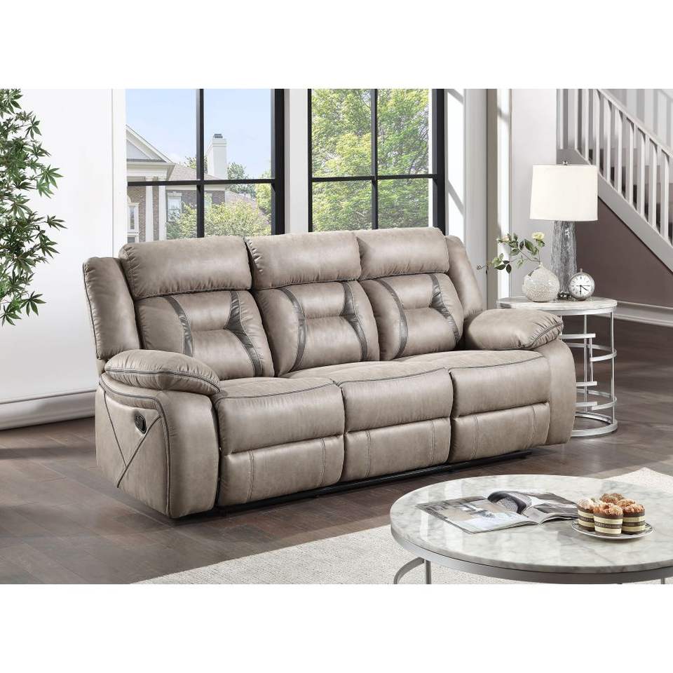 Conjunto de Sofá Seccional Reclinable Tyson DB con Mesa Abatible, Tapicería de Cuero Genuino y Sintético, Color Plata Perla
