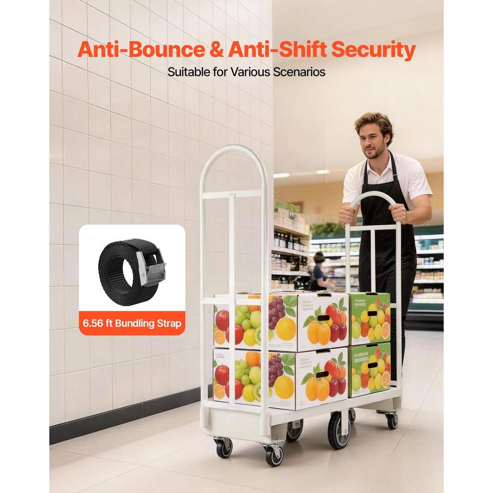 Carretilla de Plataforma de Acero de Alta Resistencia U-Boat con Capacidad de Carga de 2000 Libras, Carro de Mano Industrial para Manejo de Seis Materiales