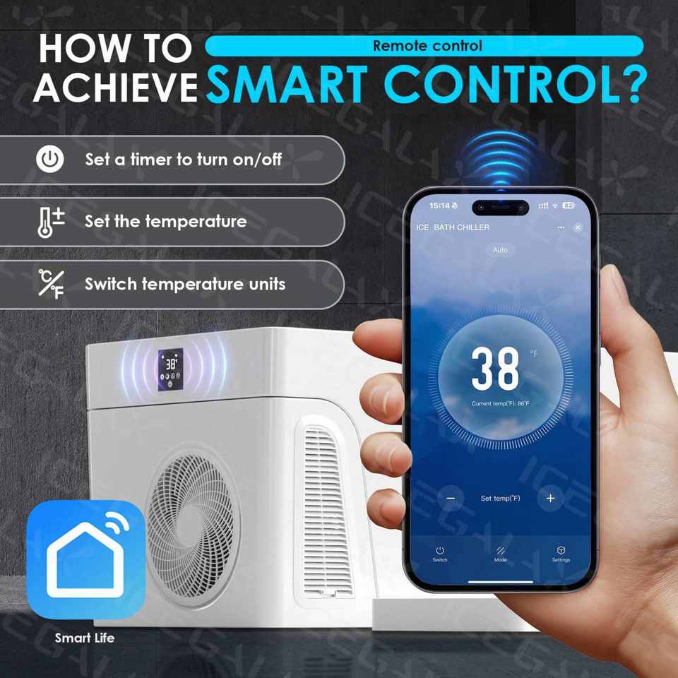 Característica:Respetuoso del medio ambiente, Fácil-conjunto, Remojo, Baño de Hielo Todo en Uno Integrado con Control Remoto por App y Ozono
