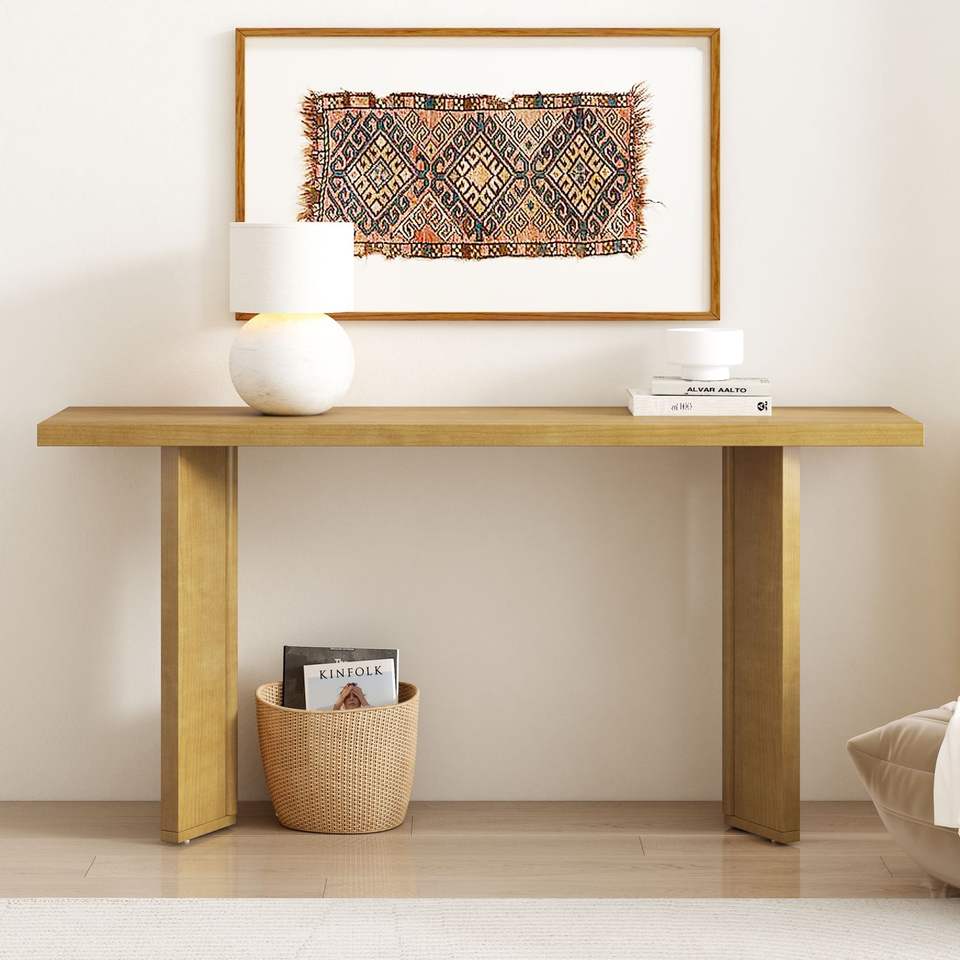 Mesa Consola U_STYLE con Chapa de Pino y Patas Geométricas Elegantes para Sala de Estar, Estudio o Comedor