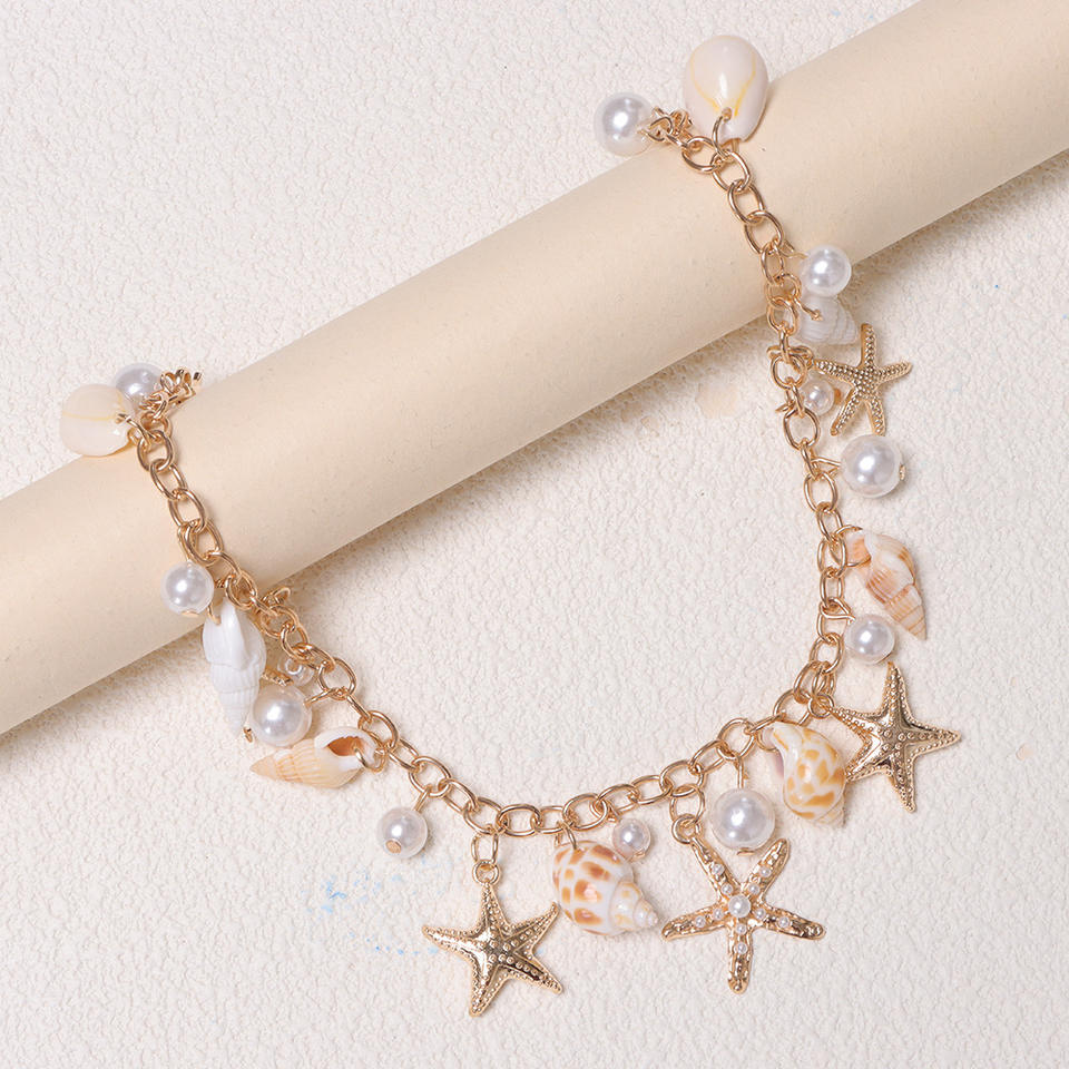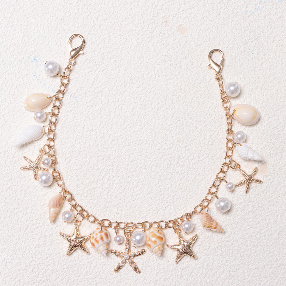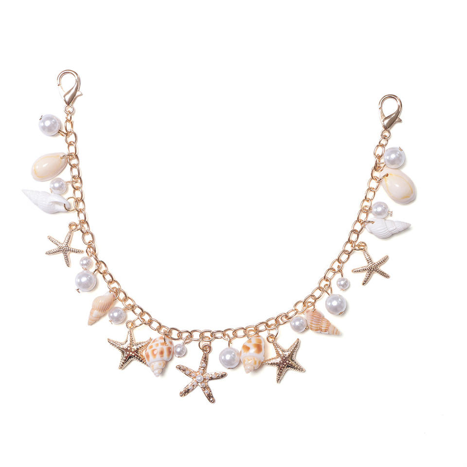 Cadena para bolso en forma de U con dijes de estrella de mar, concha y perla, decoración de vida marina en aleación, estilo vacaciones en la playa