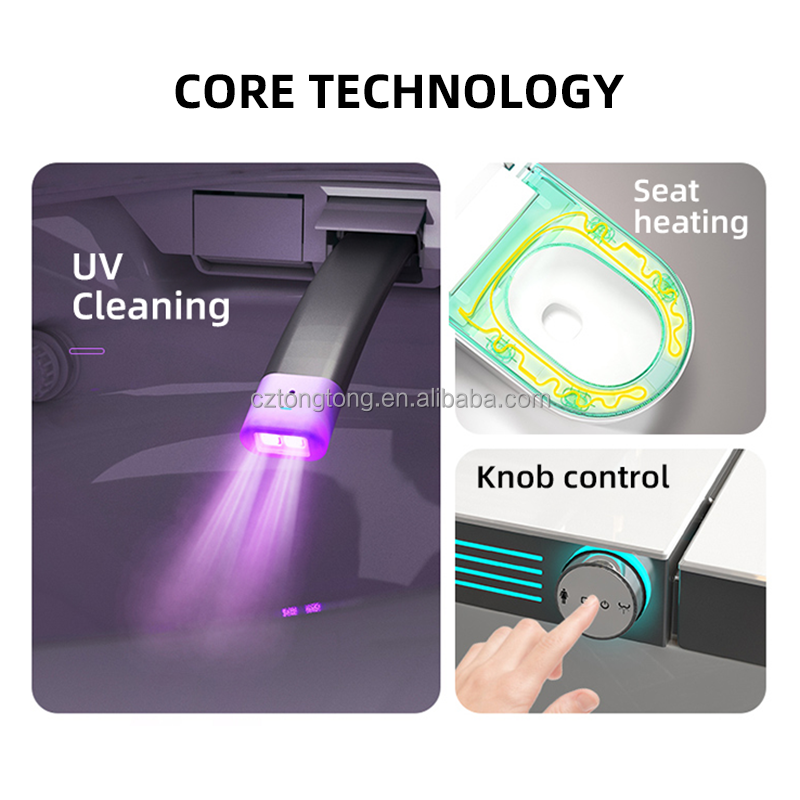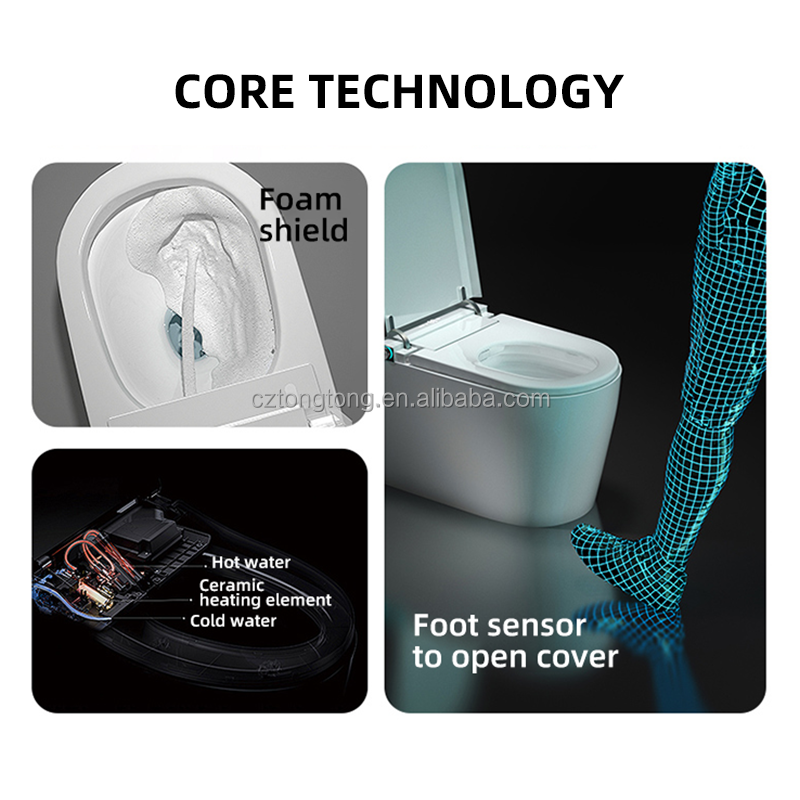 Gran oferta en forma de U, artículos sanitarios inteligentes, WC, baño, montado en el suelo, asiento de inodoro automático barato, inodoro inteligente de cerámica