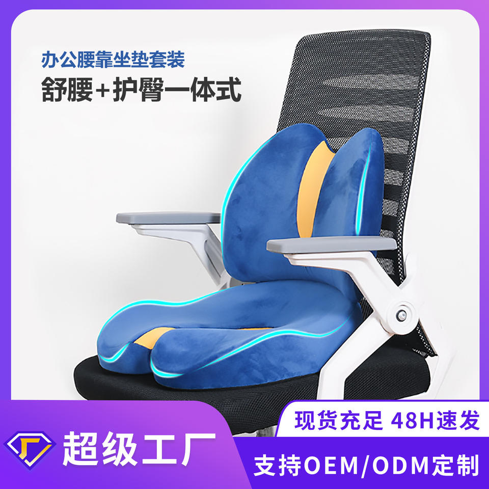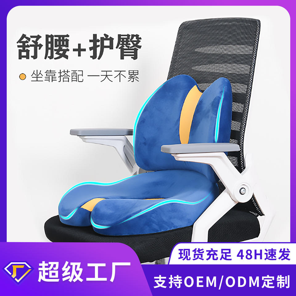Cojín de asiento con soporte lumbar de espuma viscoelástica en forma de U para silla de oficina y para una postura correcta, en azul y amarillo