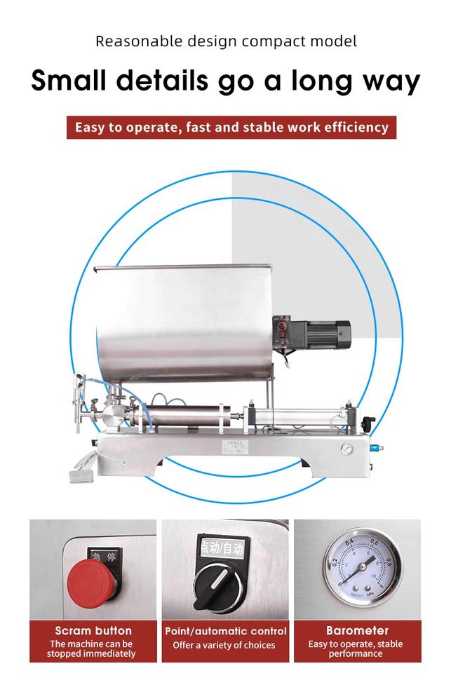 Máquina de llenado de pasta agitadora Horizontal neumática con tolva en forma de U Máquina de llenado rotativa para crema de miel Aceite Crema Bebida