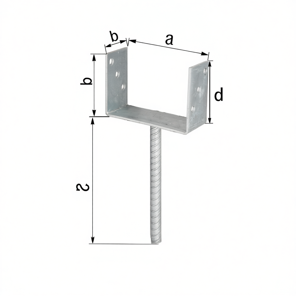 Soporte de poste en forma de U ETA-10/0210 81x100x200x60mm Acero galvanizado en caliente con anclaje de hormigón GAH para cercas, celosías y puertas
