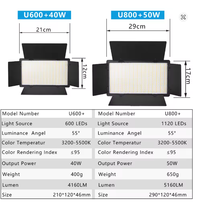 Luz de estudio fotográfico LED U800 para Tiktok Youbute, iluminación de vídeo en vivo, lámpara de Panel de fotografía de grabación de vídeo portátil