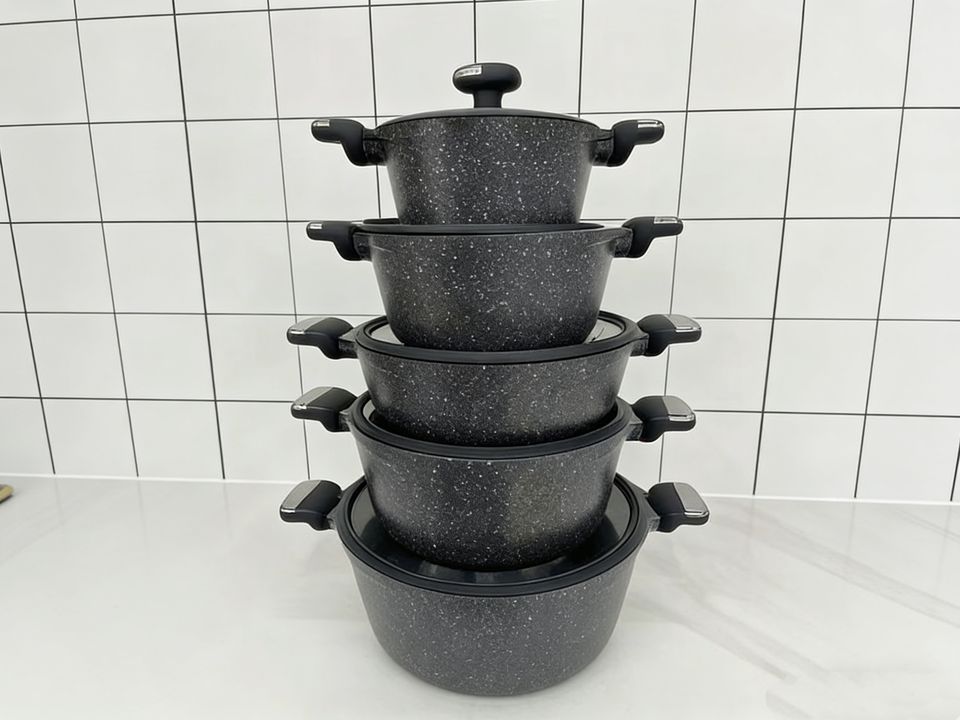 Juego de Utensilios de Cocina Antiadherentes Duraderos UAKEEN de 10 Piezas, Revestimiento de Granito, Juego de Cacerolas de 32 cm, Utensilios de Cocina de Alta Calidad Fabricados en China