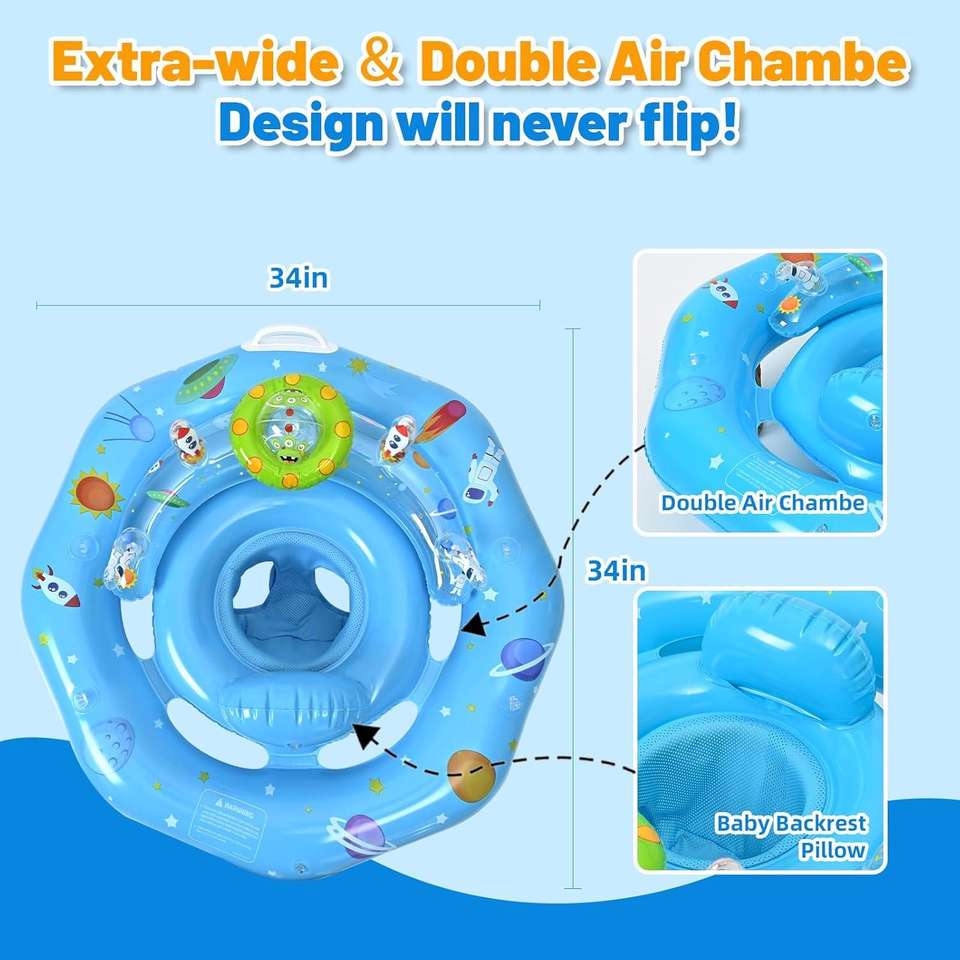 Flotador de Piscina para Bebés con Diseño de OVNI y Alienígena, con Toldo, Asiento de Seguridad Ajustable y Juguetes con Sonido