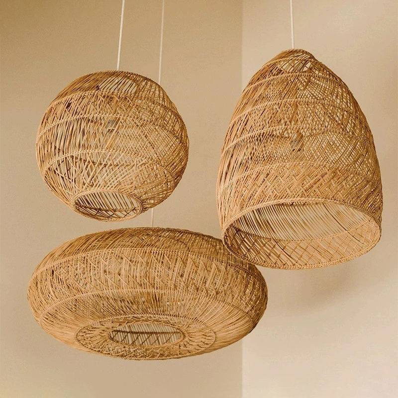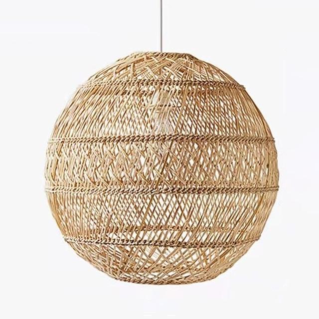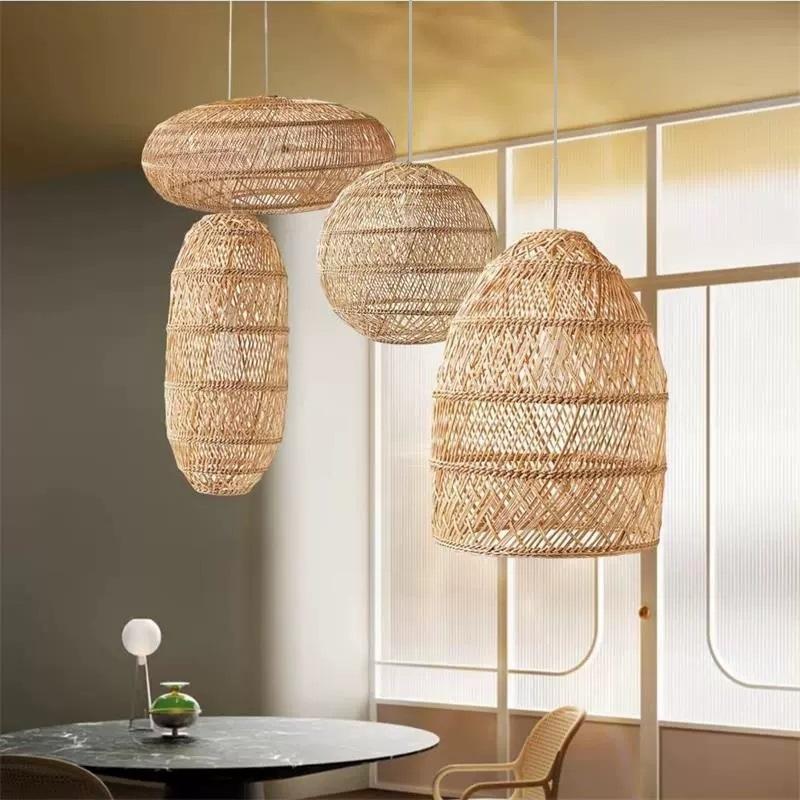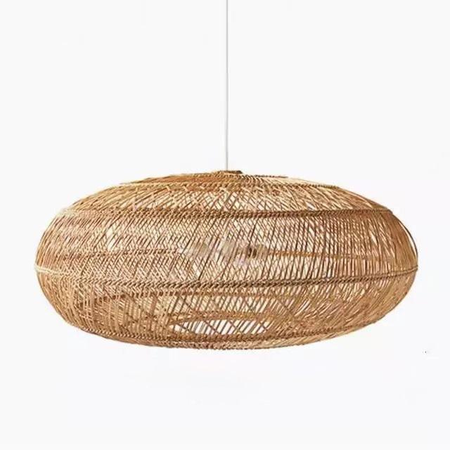Pantalla de ratán natural con forma de OVNI, luces colgantes de gran tamaño para Centro Comercial