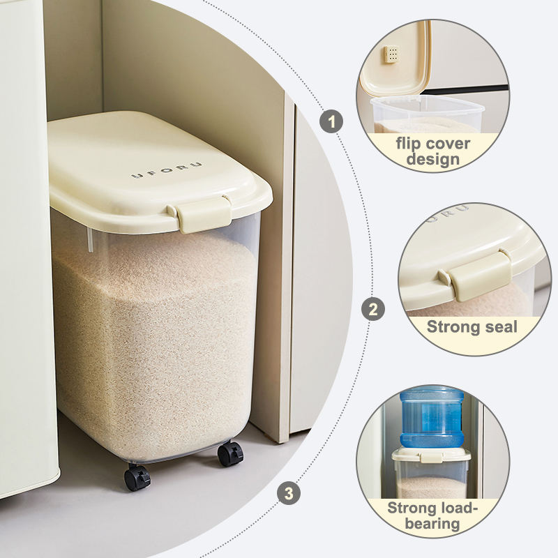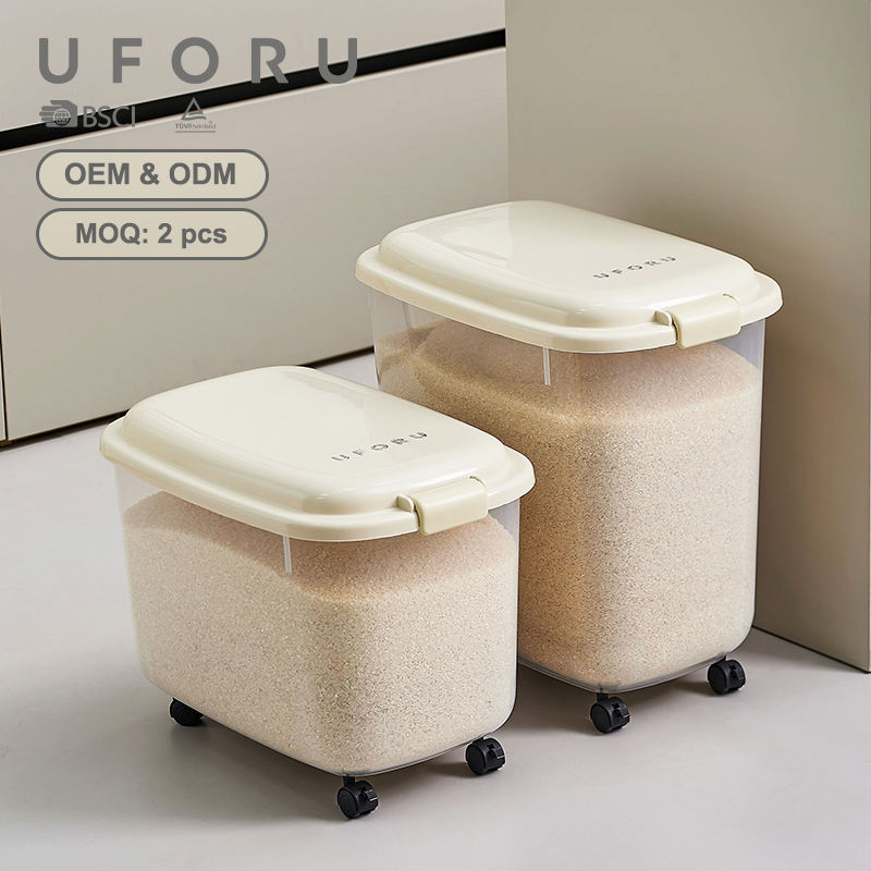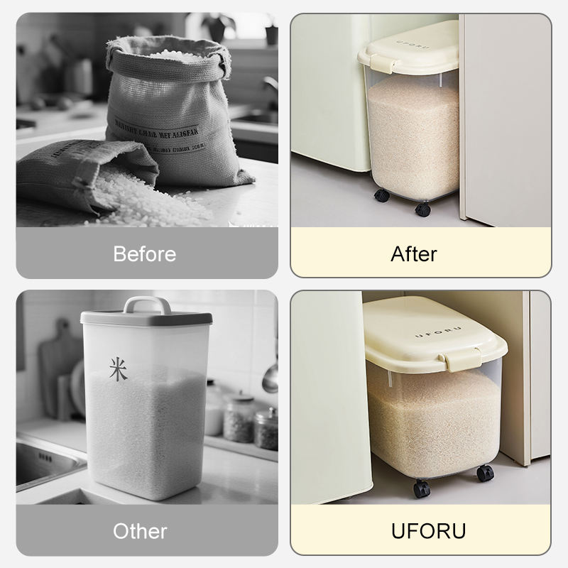 Contenedor de Almacenamiento de Alimentos para Cocina UFORU, con Tapa Hermética, 25 kg, Recipiente de Plástico para Granos, Arroz y Cereales