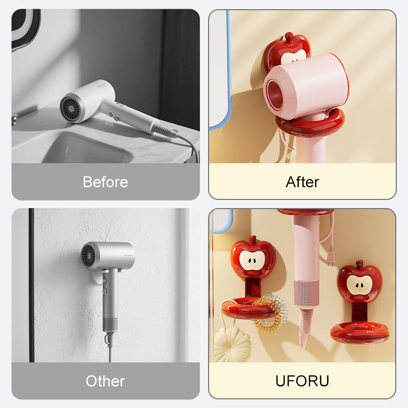 Soporte de Pared para Secador de Pelo UFORU Rangement, Organizador de Almacenamiento para Baño con Estante y Diseño de Manzana