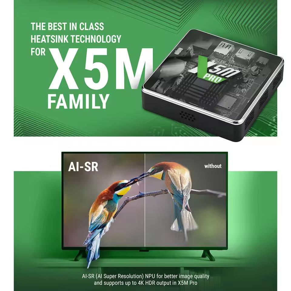 UGOOS X5M PRO Smart TV Box Android 14 Amlogic S905X5M LPDDR4 4GB 32GB Compatible con 4K AI-SR CEC AV1 WiFi6 BT5.4 1000M Control remoto por voz