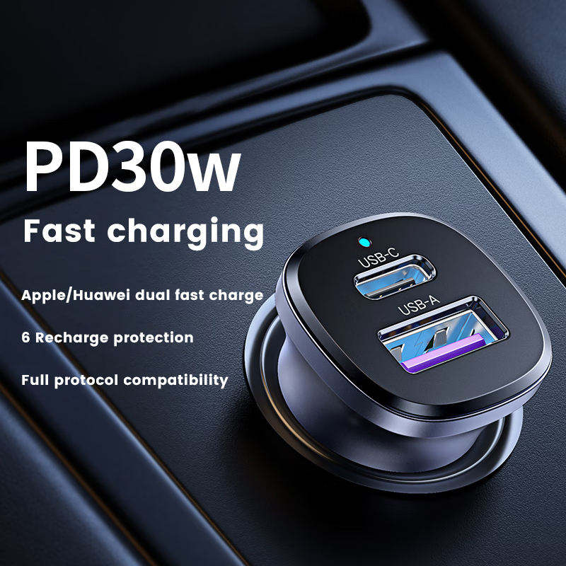 Mini cargador de coche UGREEN 30W tipo C carga rápida 4,0 3,0 teléfono móvil portátil PD cargador de coche para iPhone Huawei