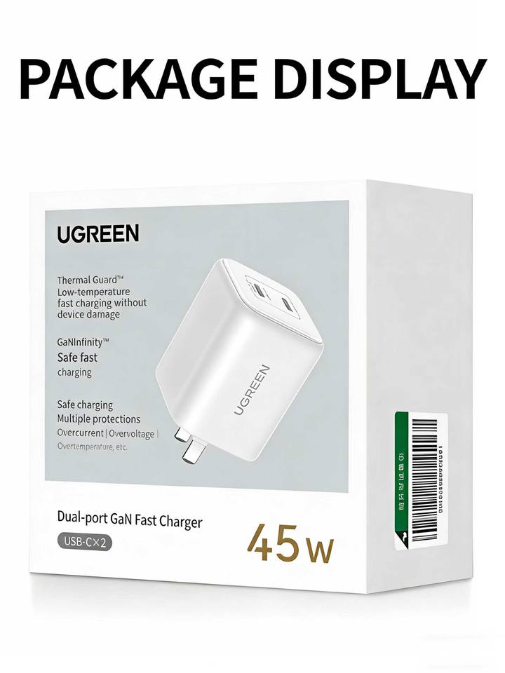 Nombre del producto:UGREEN Cargador Rápido GaN de Doble Puerto de 45W