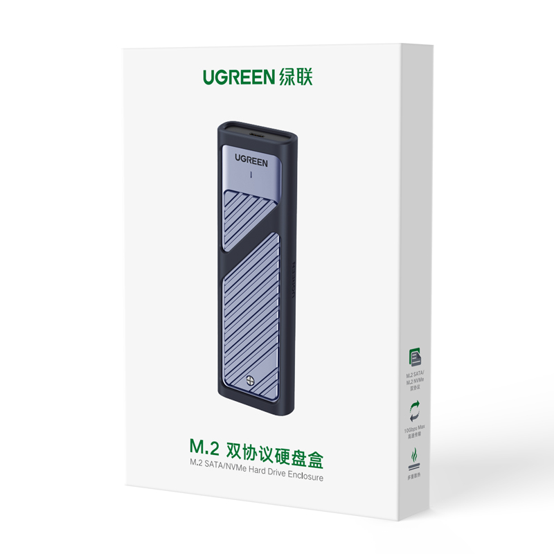 Carcasa UGREEN M.2 NVMe SATA para SSD, Aluminio, 10 Gbps, USB C, Externa, Portátil, Carcasa NVMe M.2, USB 3.2 Gen2 Thunderbolt