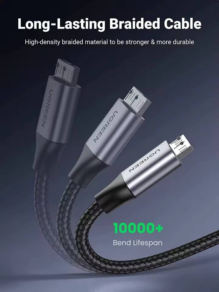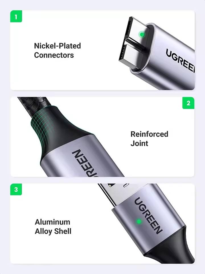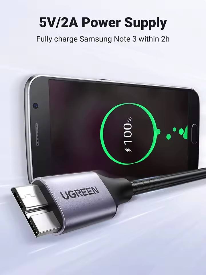 Cable Micro USB 3.0 UGREEN, Cable USB 3.0 a Micro B, Cable de Disco Duro Externo con Trenzado de Nailon, Compatible con Samsung Galaxy