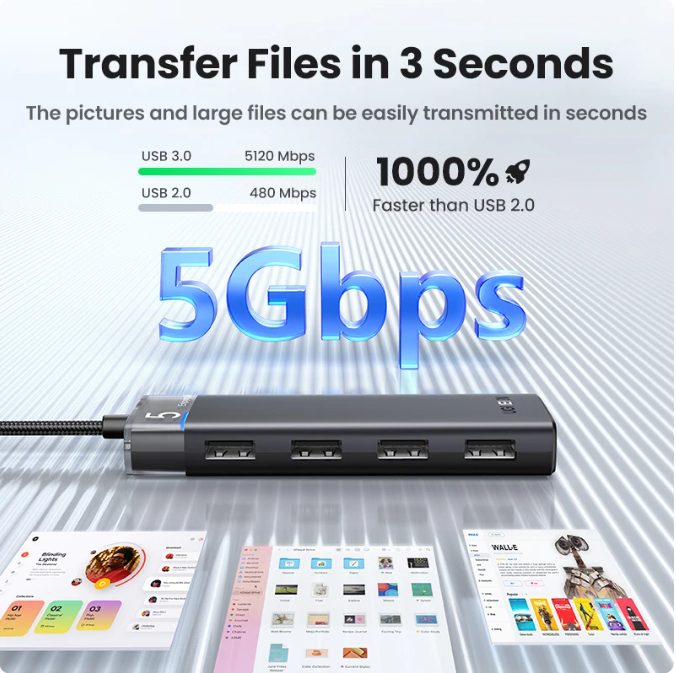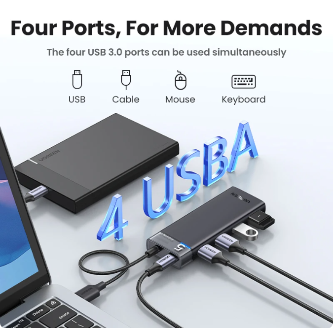 UGREEN USB Hub USB 3,0 Hub 4 puertos 5Gbps USB Multi Splitter adaptador para Macbook iPad Pro Air Laptop PC accesorios de computadora