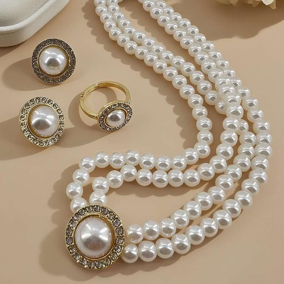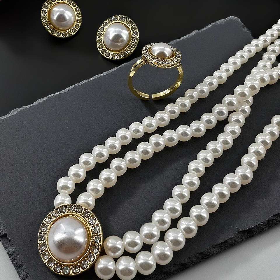 UGood Jewelry Set Pearl De UGood Amplifica la estética de la Declaración para fiesta de graduación Collar de oro Pendientes y anillo de regalo