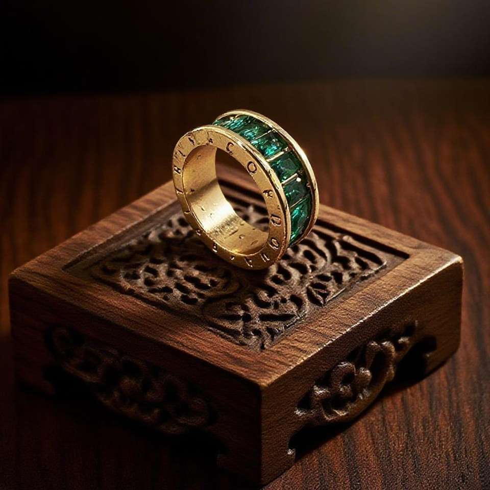 UGood Anillo con gema Esmeralda Patrón geométrico Zicron Anillo de latón para salidas casuales y negocios Mejora el ambiente estético
