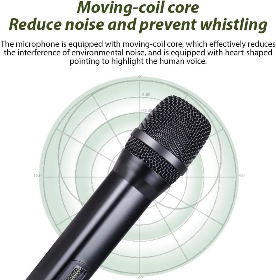 Micrófono Dinámico Portátil UHF con Conector XLR, Micrófono Inalámbrico Recargable de Mano con Eco para Karaoke, Bajo Precio para Conferencias