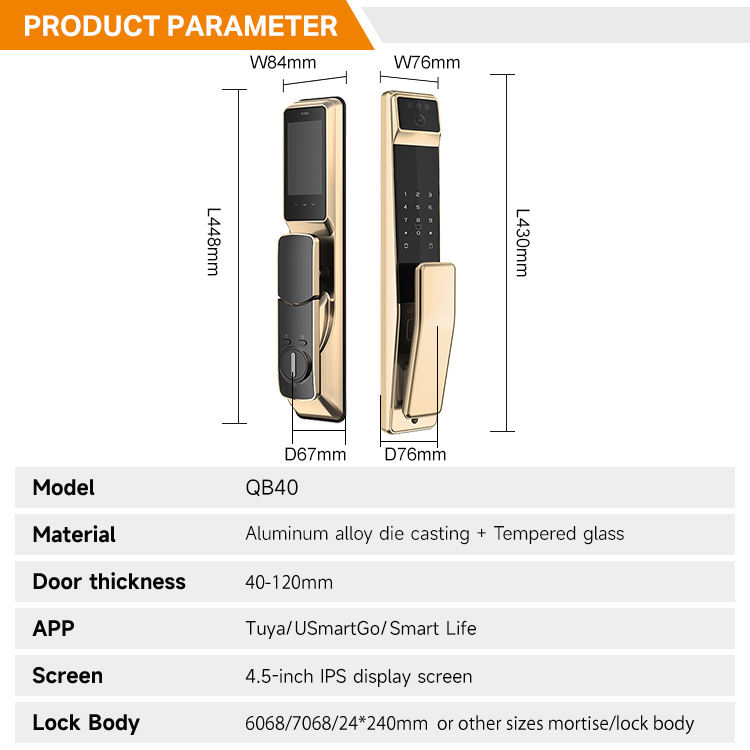UIELOCK QB40 Smartlock OEM cerradura electrónica biométrica con huella para portón, cerradura digital inteligente exterior de seguridad para puerta principal con cámara