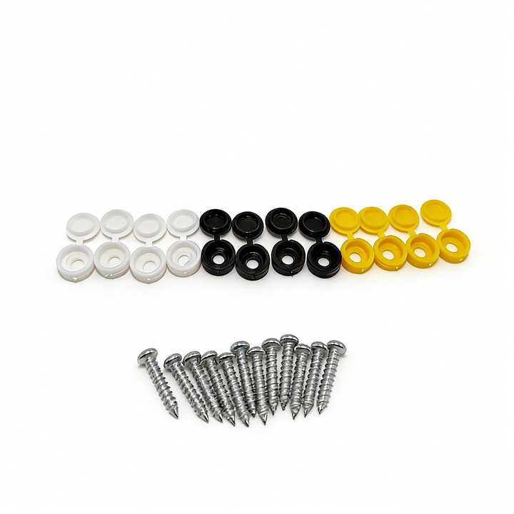 Kit de tornillos de fijación para matrículas del Reino Unido, diseño autorroscante, tapas ocultas, blanco, amarillo, negro, para matrículas de coches, furgonetas y remolques del Reino Unido