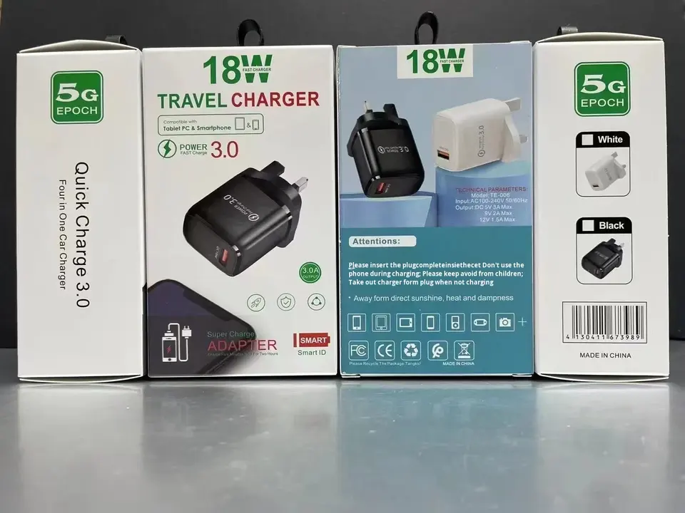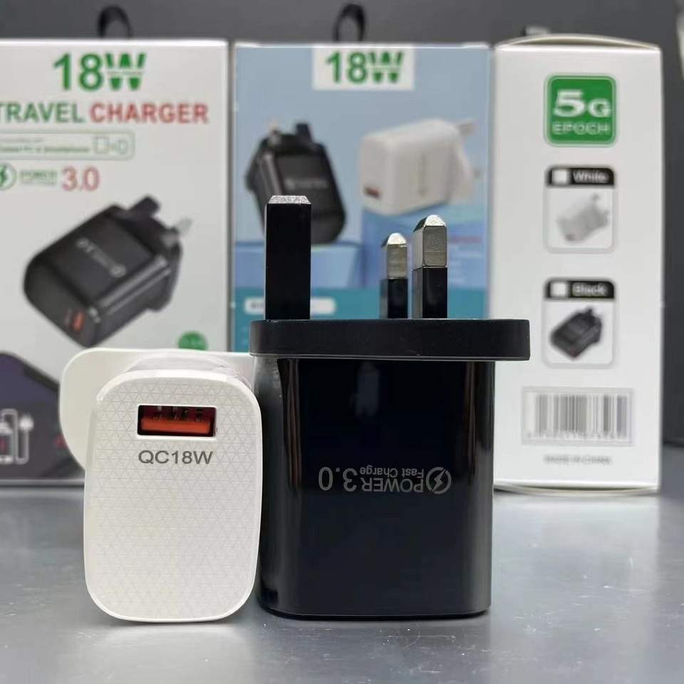 Cargador Rápido para Teléfono Móvil con Enchufe del Reino Unido, 18W 3A QC3.0, Estándar del Reino Unido, Enchufe USB