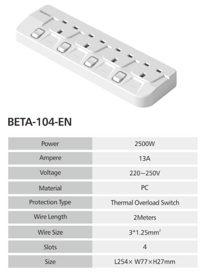 Enchufe de Extensión Tipo BETA del Reino Unido, Disponible en Stock, Protección Contra Sobrecargas, Material Ignífugo para PC